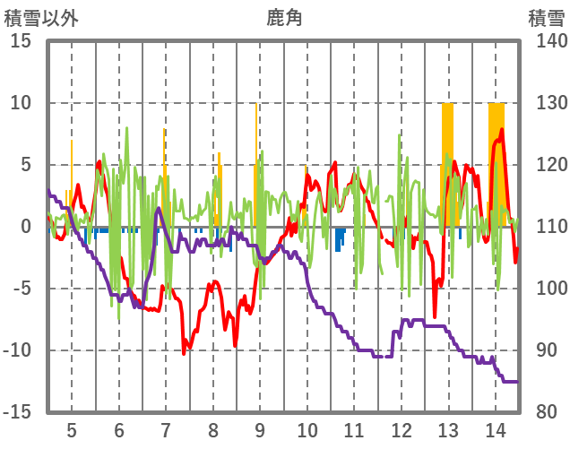 | 日 | 時 | 気温 | 降水 | 風向/風速 | 日照 | 積雪 | 降雪 |