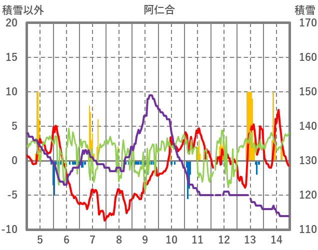 | 日 | 時 | 気温 | 降水 | 風向/風速 | 日照 | 積雪 | 降雪 |