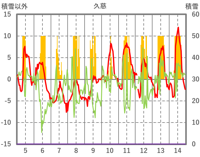 | 日 | 時 | 気温 | 降水 | 風向/風速 | 日照 | 積雪 | 降雪 |