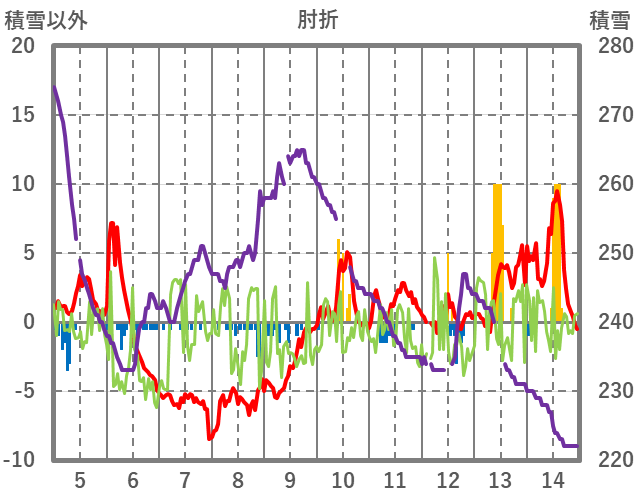 | 日 | 時 | 気温 | 降水 | 風向/風速 | 日照 | 積雪 | 降雪 |