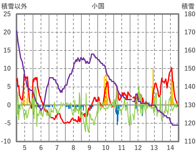 | 日 | 時 | 気温 | 降水 | 風向/風速 | 日照 | 積雪 | 降雪 |