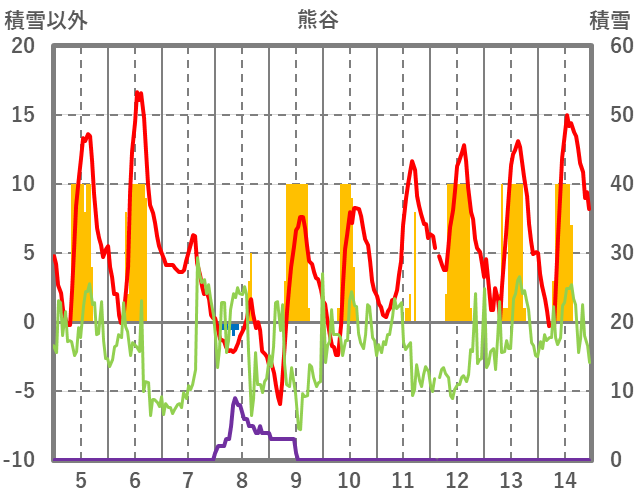 | 日 | 時 | 気温 | 降水 | 風向/風速 | 日照 | 積雪 | 降雪 |