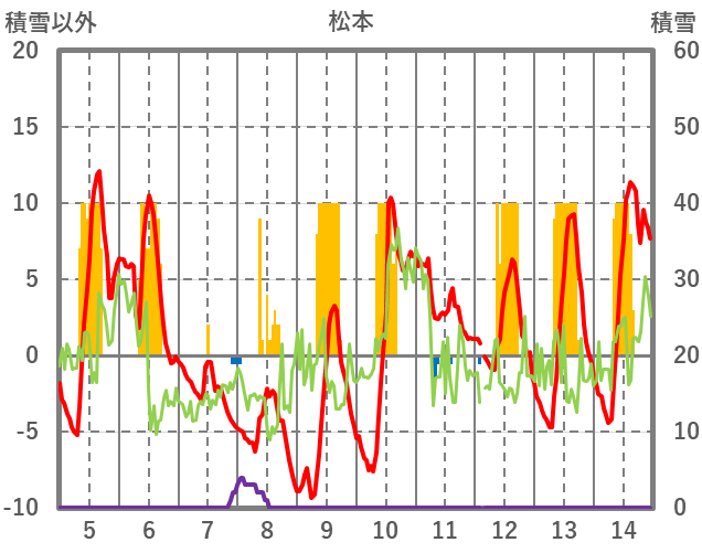 | 日 | 時 | 気温 | 降水 | 風向/風速 | 日照 | 積雪 | 降雪 |
