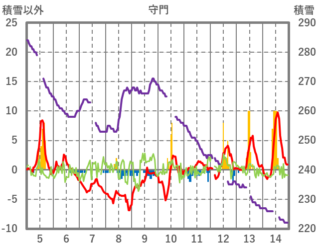 | 日 | 時 | 気温 | 降水 | 風向/風速 | 日照 | 積雪 | 降雪 |
