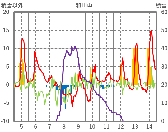 | 日 | 時 | 気温 | 降水 | 風向/風速 | 日照 | 積雪 | 降雪 |