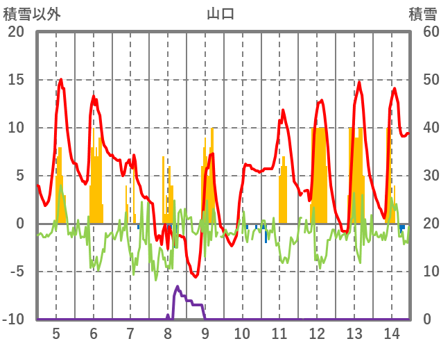 | 日 | 時 | 気温 | 降水 | 風向/風速 | 日照 | 積雪 | 降雪 |