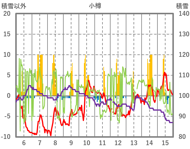 | 日 | 時 | 気温 | 降水 | 風向/風速 | 日照 | 積雪 | 降雪 |
