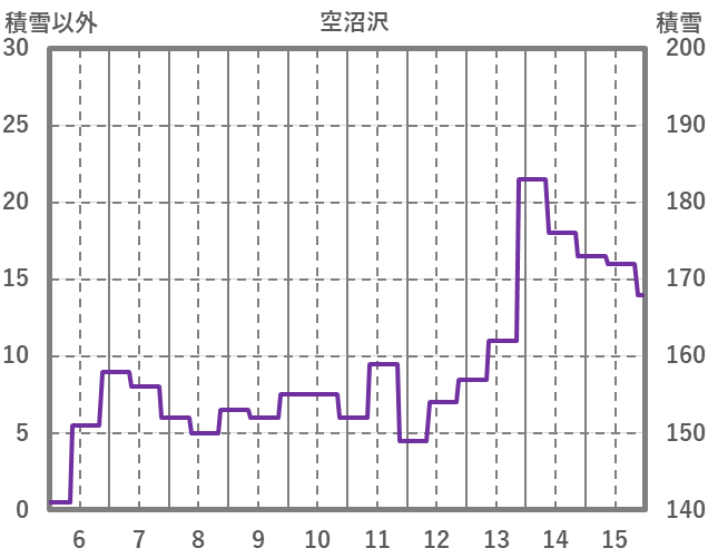 | 日 | 時 | 気温 | 降水 | 風向/風速 | 日照 | 積雪 | 降雪 |