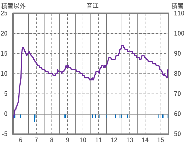 | 日 | 時 | 気温 | 降水 | 風向/風速 | 日照 | 積雪 | 降雪 |