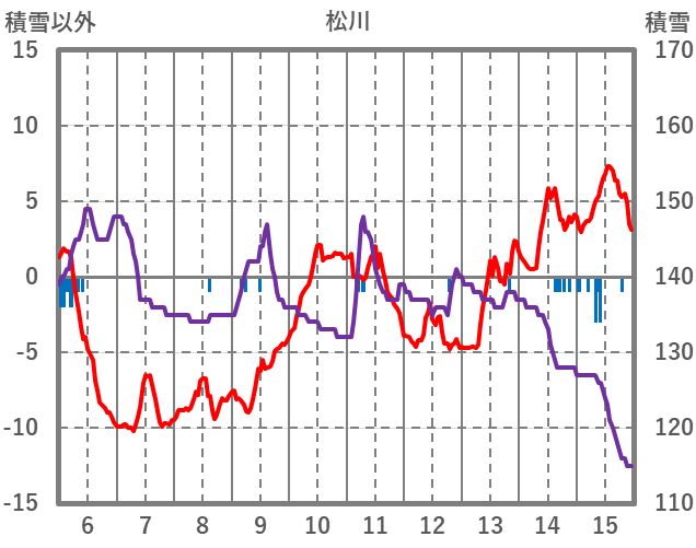 | 日 | 時 | 気温 | 降水 | 風向/風速 | 日照 | 積雪 | 降雪 |