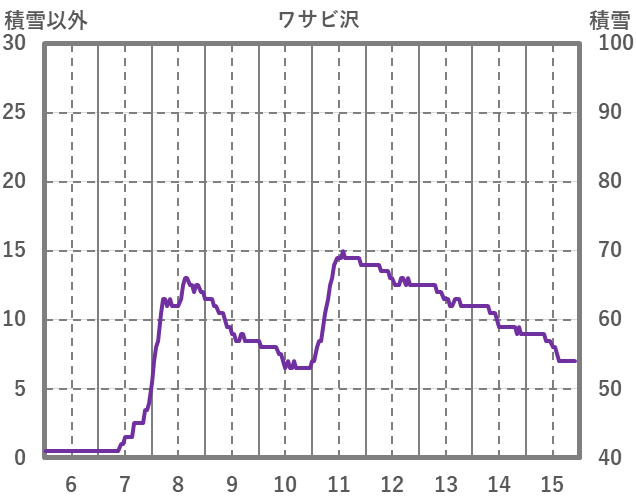 | 日 | 時 | 気温 | 降水 | 風向/風速 | 日照 | 積雪 | 降雪 |