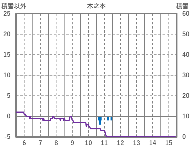 | 日 | 時 | 気温 | 降水 | 風向/風速 | 日照 | 積雪 | 降雪 |