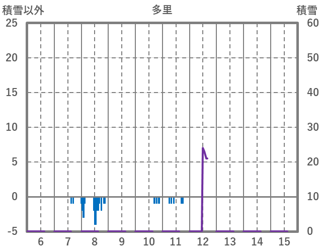| 日 | 時 | 気温 | 降水 | 風向/風速 | 日照 | 積雪 | 降雪 |