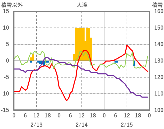 | 日 | 時 | 気温 | 降水 | 風向/風速 | 日照 | 積雪 | 降雪 |