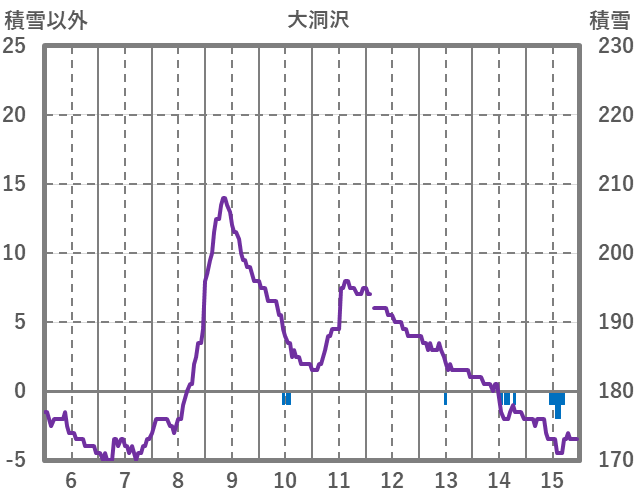 | 日 | 時 | 気温 | 降水 | 風向/風速 | 日照 | 積雪 | 降雪 |