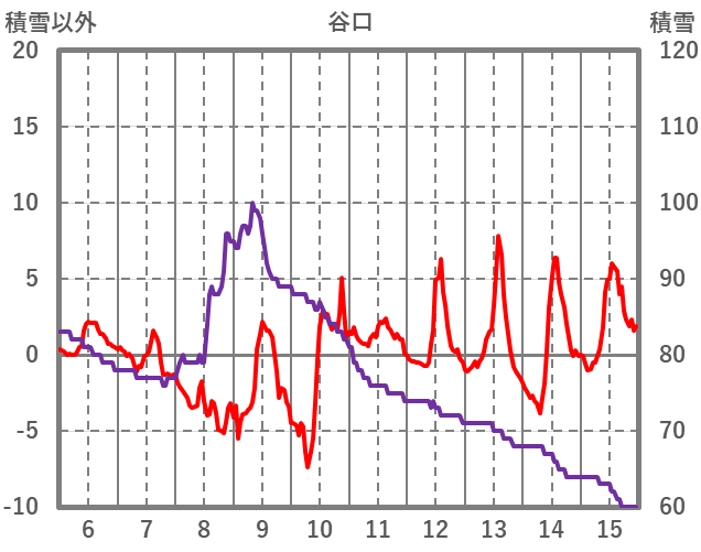 | 日 | 時 | 気温 | 降水 | 風向/風速 | 日照 | 積雪 | 降雪 |