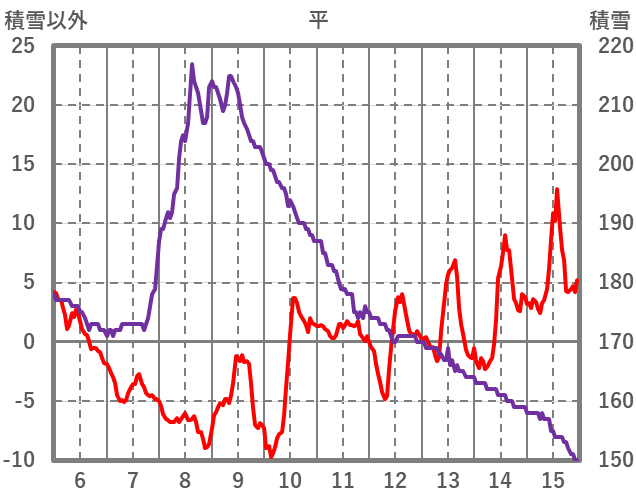 | 日 | 時 | 気温 | 降水 | 風向/風速 | 日照 | 積雪 | 降雪 |