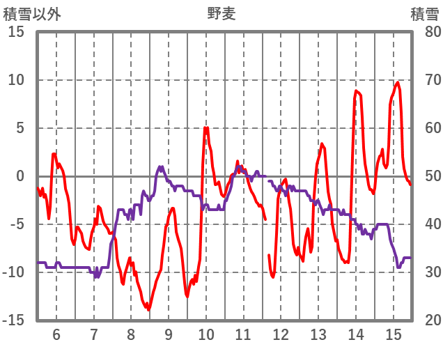 | 日 | 時 | 気温 | 降水 | 風向/風速 | 日照 | 積雪 | 降雪 |