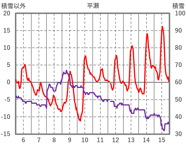 | 日 | 時 | 気温 | 降水 | 風向/風速 | 日照 | 積雪 | 降雪 |