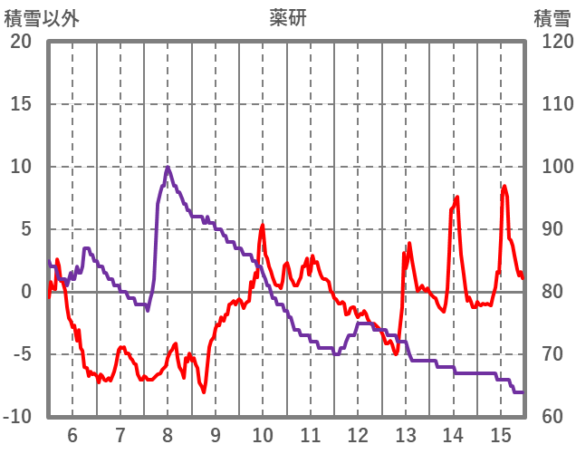 | 日 | 時 | 気温 | 降水 | 風向/風速 | 日照 | 積雪 | 降雪 |