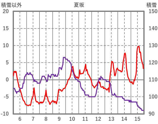 | 日 | 時 | 気温 | 降水 | 風向/風速 | 日照 | 積雪 | 降雪 |