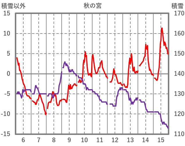 | 日 | 時 | 気温 | 降水 | 風向/風速 | 日照 | 積雪 | 降雪 |