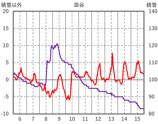 | 日 | 時 | 気温 | 降水 | 風向/風速 | 日照 | 積雪 | 降雪 |