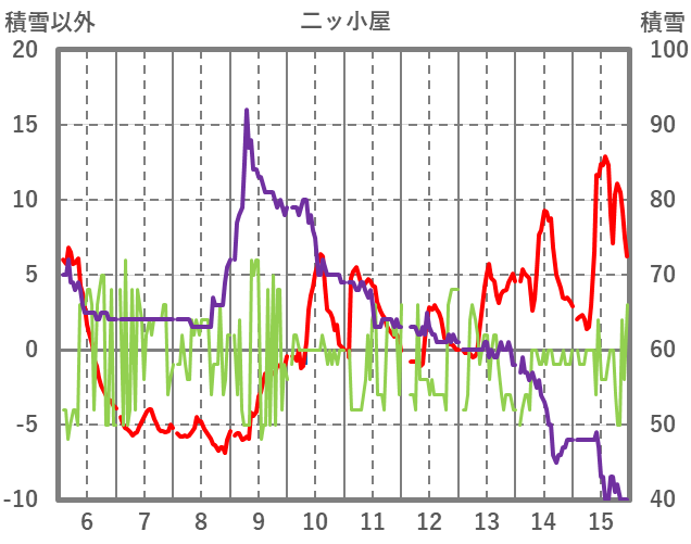 | 日 | 時 | 気温 | 降水 | 風向/風速 | 日照 | 積雪 | 降雪 |
