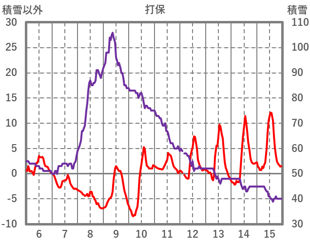 | 日 | 時 | 気温 | 降水 | 風向/風速 | 日照 | 積雪 | 降雪 |