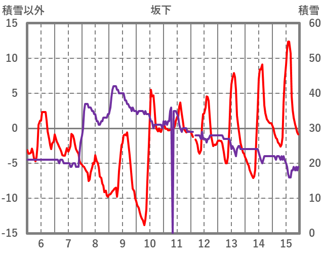 | 日 | 時 | 気温 | 降水 | 風向/風速 | 日照 | 積雪 | 降雪 |