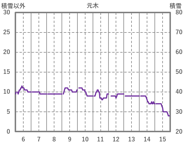 | 日 | 時 | 気温 | 降水 | 風向/風速 | 日照 | 積雪 | 降雪 |