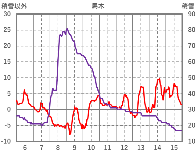 | 日 | 時 | 気温 | 降水 | 風向/風速 | 日照 | 積雪 | 降雪 |