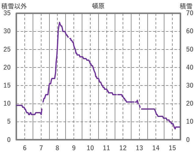 | 日 | 時 | 気温 | 降水 | 風向/風速 | 日照 | 積雪 | 降雪 |
