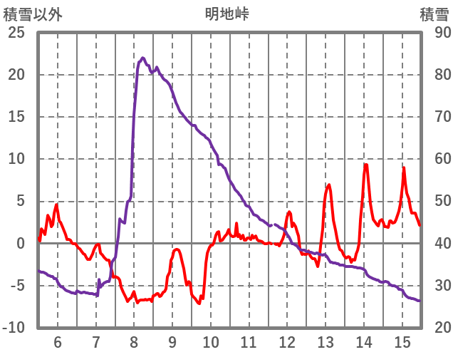 | 日 | 時 | 気温 | 降水 | 風向/風速 | 日照 | 積雪 | 降雪 |