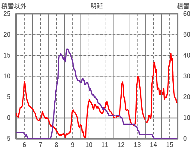 | 日 | 時 | 気温 | 降水 | 風向/風速 | 日照 | 積雪 | 降雪 |