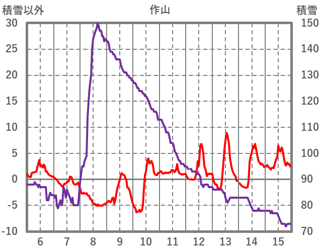 | 日 | 時 | 気温 | 降水 | 風向/風速 | 日照 | 積雪 | 降雪 |