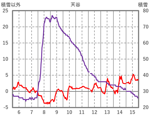 | 日 | 時 | 気温 | 降水 | 風向/風速 | 日照 | 積雪 | 降雪 |