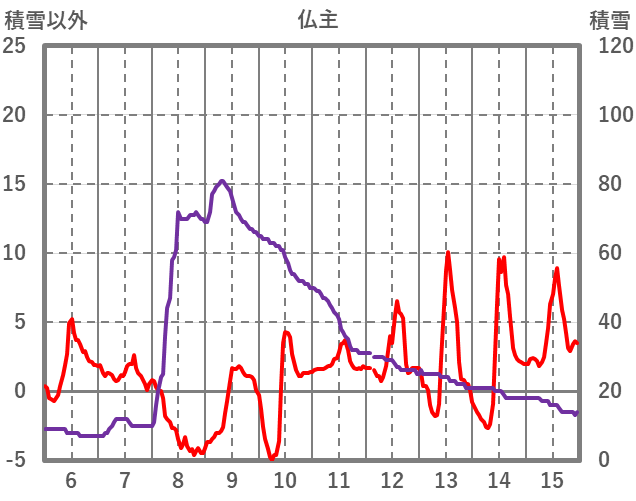 | 日 | 時 | 気温 | 降水 | 風向/風速 | 日照 | 積雪 | 降雪 |