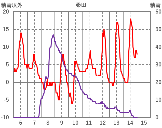 | 日 | 時 | 気温 | 降水 | 風向/風速 | 日照 | 積雪 | 降雪 |