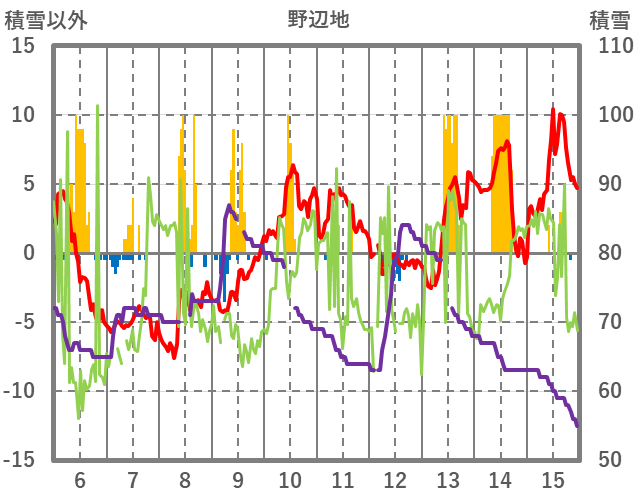 | 日 | 時 | 気温 | 降水 | 風向/風速 | 日照 | 積雪 | 降雪 |