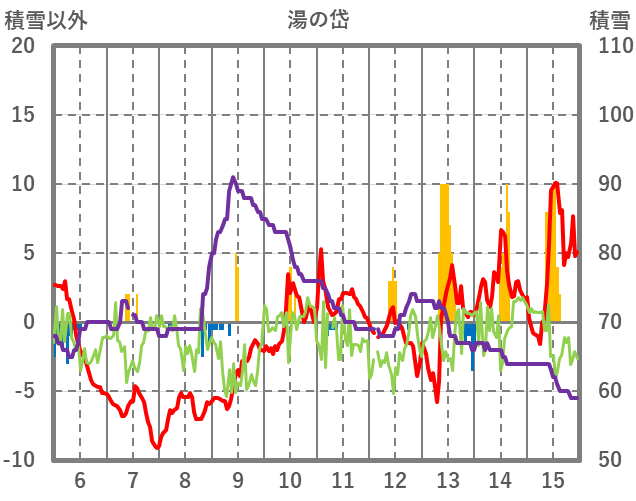 | 日 | 時 | 気温 | 降水 | 風向/風速 | 日照 | 積雪 | 降雪 |