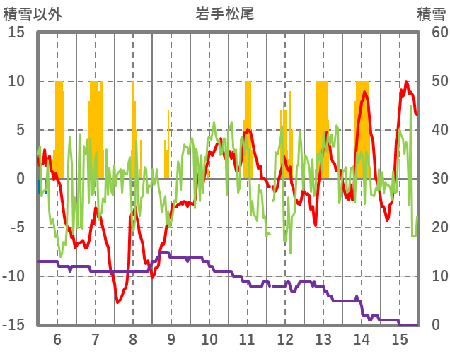 | 日 | 時 | 気温 | 降水 | 風向/風速 | 日照 | 積雪 | 降雪 |