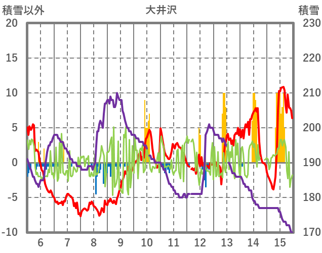 | 日 | 時 | 気温 | 降水 | 風向/風速 | 日照 | 積雪 | 降雪 |