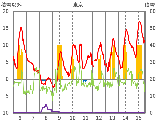 | 日 | 時 | 気温 | 降水 | 風向/風速 | 日照 | 積雪 | 降雪 |