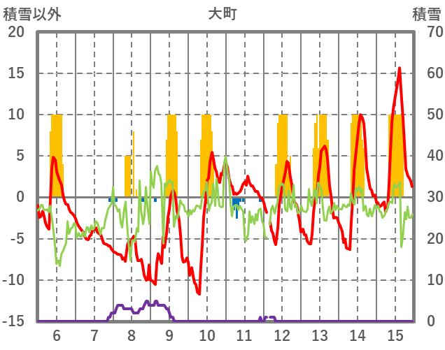 | 日 | 時 | 気温 | 降水 | 風向/風速 | 日照 | 積雪 | 降雪 |
