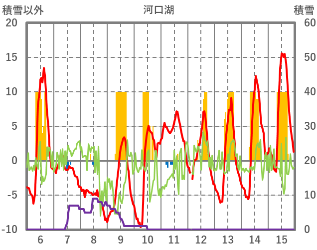 | 日 | 時 | 気温 | 降水 | 風向/風速 | 日照 | 積雪 | 降雪 |