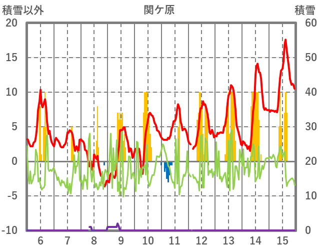 | 日 | 時 | 気温 | 降水 | 風向/風速 | 日照 | 積雪 | 降雪 |