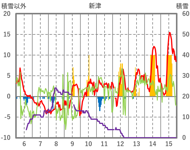 | 日 | 時 | 気温 | 降水 | 風向/風速 | 日照 | 積雪 | 降雪 |