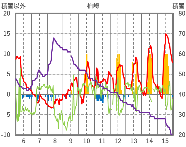 | 日 | 時 | 気温 | 降水 | 風向/風速 | 日照 | 積雪 | 降雪 |