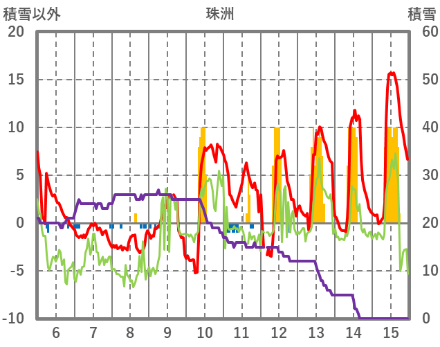 | 日 | 時 | 気温 | 降水 | 風向/風速 | 日照 | 積雪 | 降雪 |